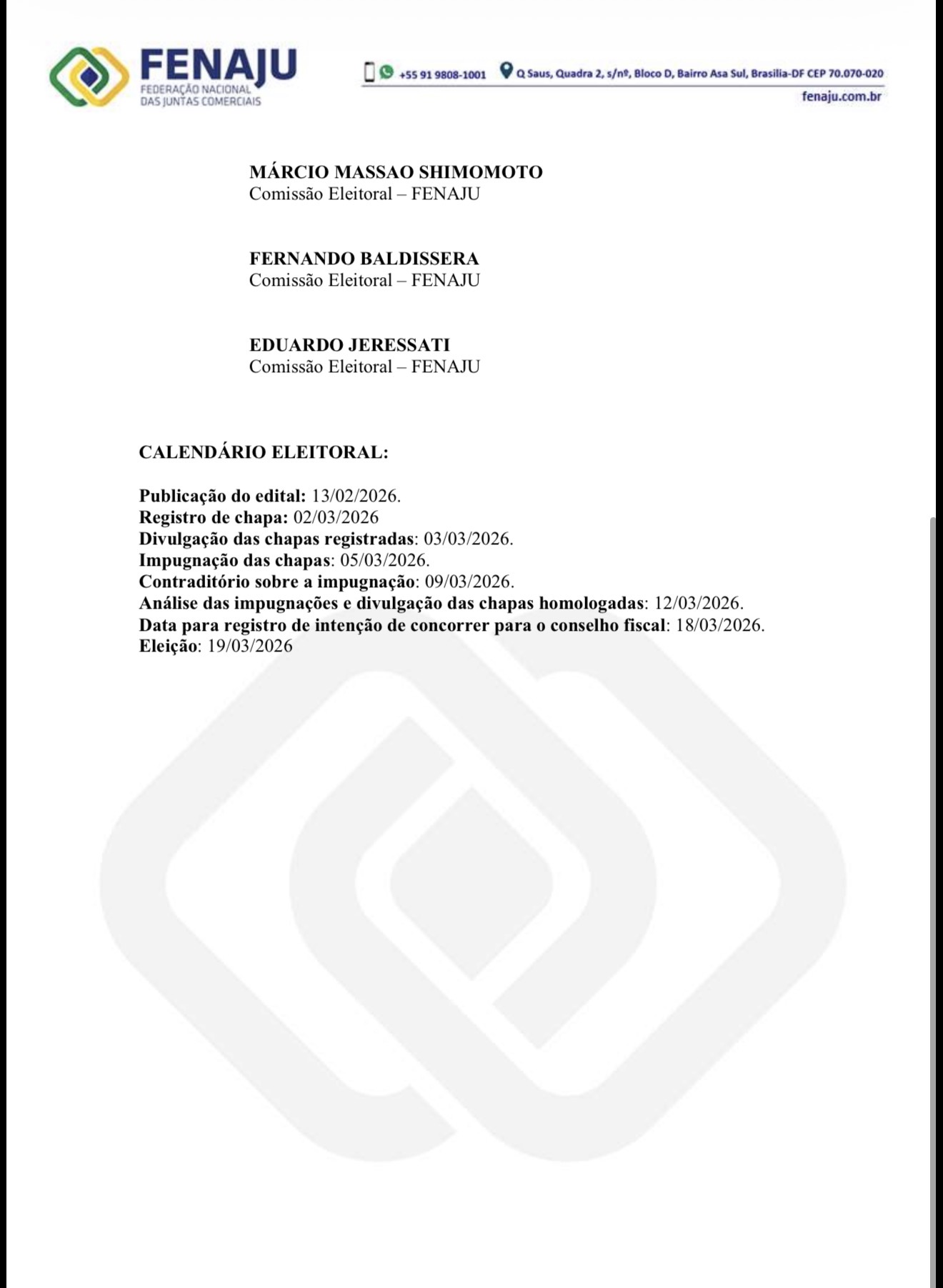 A Comissão Eleitoral da Federação Nacional de Juntas Comerciais –